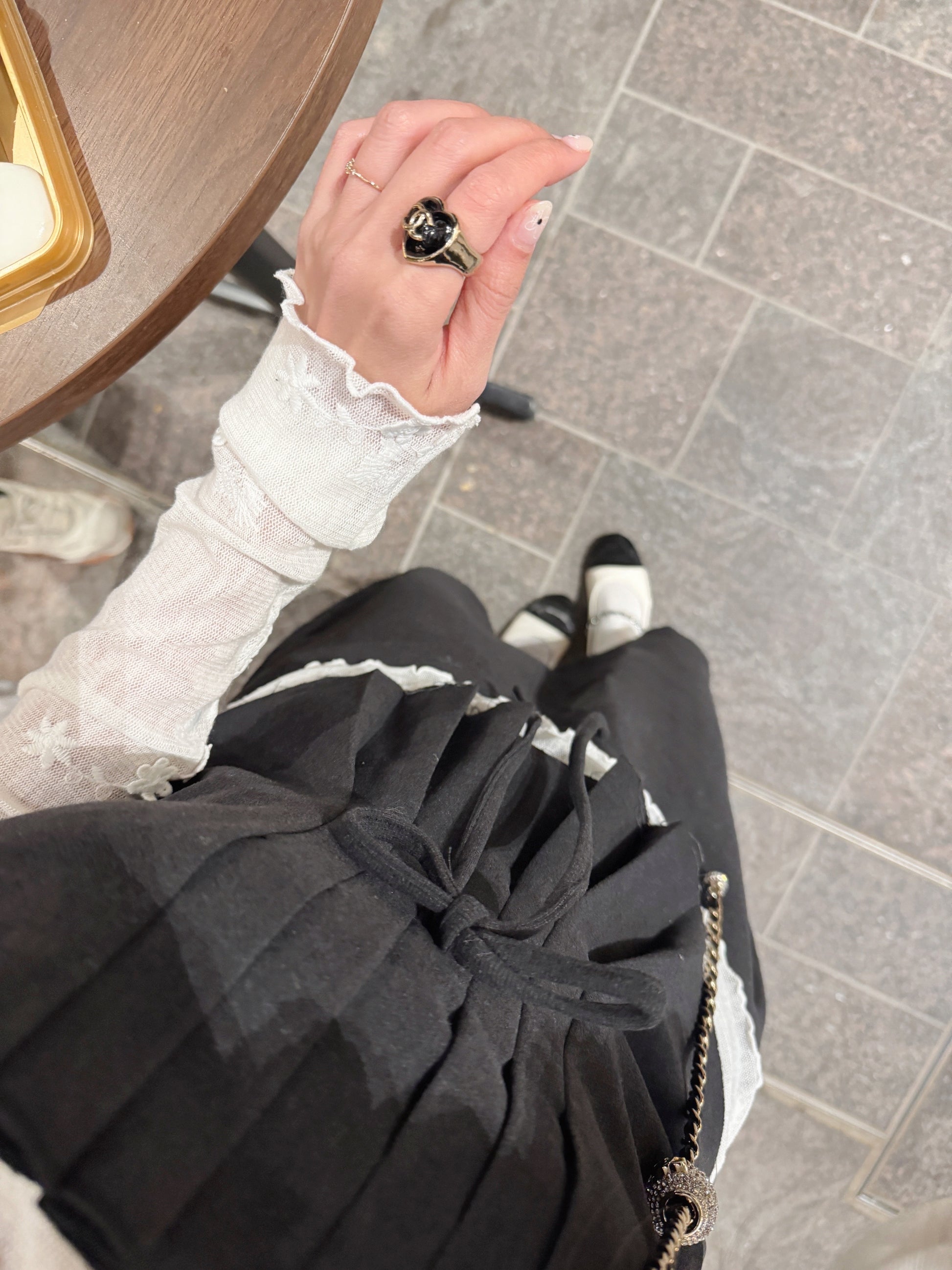裙子是稍寬版型的A-line cutting