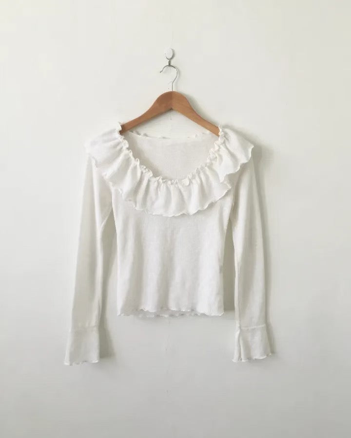 領口的位置褶疊成小捲狀