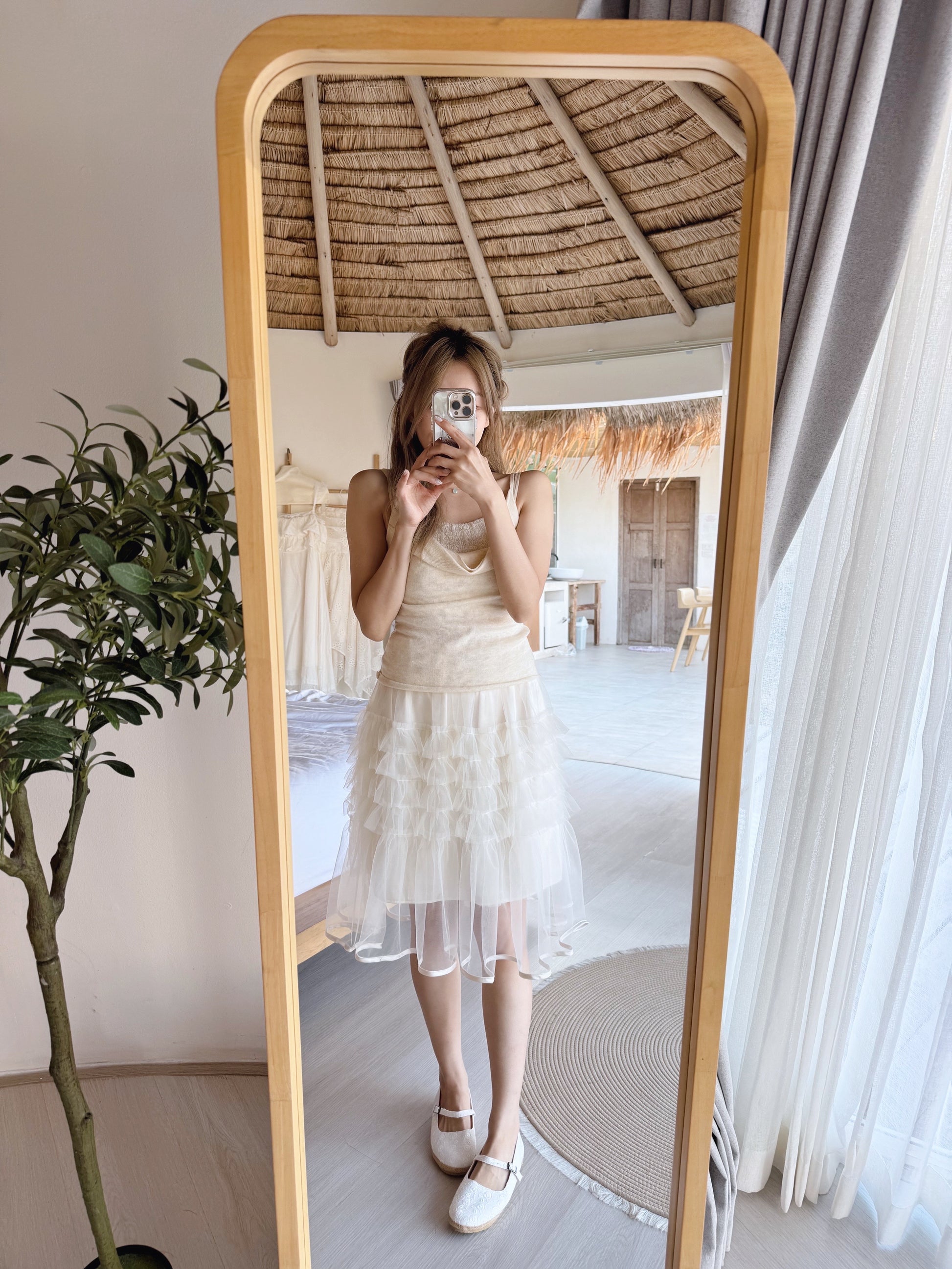 中間則用上四層的木耳邊皺褶紗網